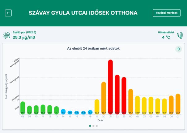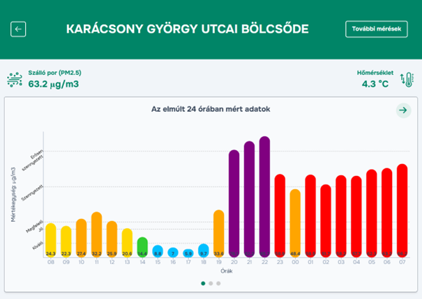 Our station in Erdőspuszta, located at the Hármashegy forest school, serves as our reference point outside populated areas and clearly demonstrates that there are no emissions from residential heating in the surrounding area: